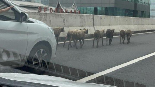 Dalam video yang diterima detikcom, terlihat ada delapan ekor kambing yang berjalan di ruas jalan JLNT.