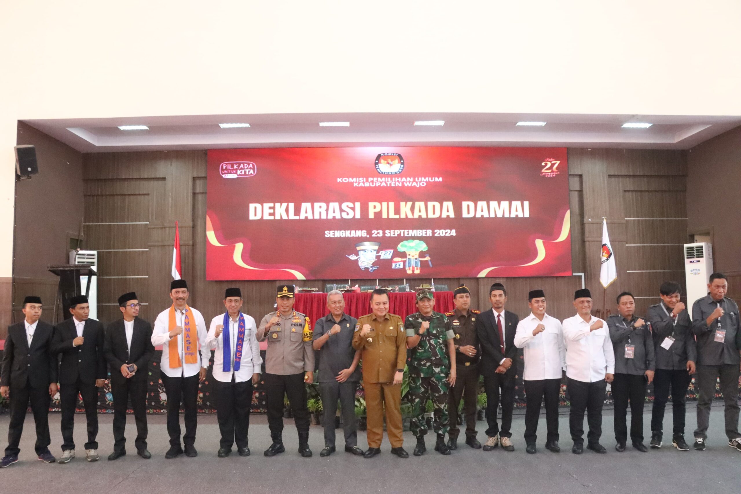 Selanjutnya, kedua pasangan calon dipersilakan memberikan sambutan dan dilanjutkan dengan deklarasi Damai Pilkada Wajo 2024.
