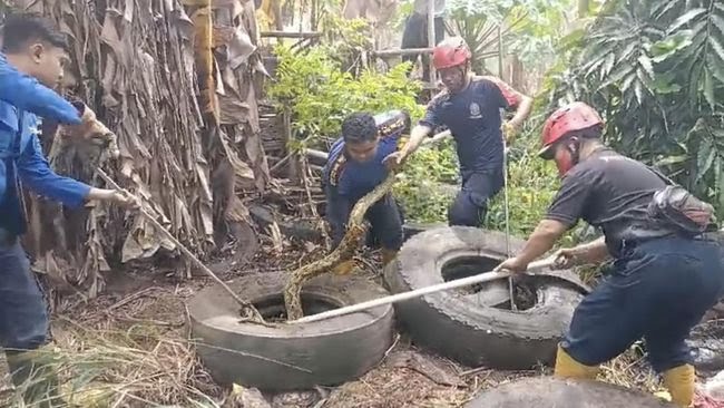 “Proses evakuasi sempat terkendala karena ada tumpukan ban di lokasi ular ini akan ditangkap,” paparnya.