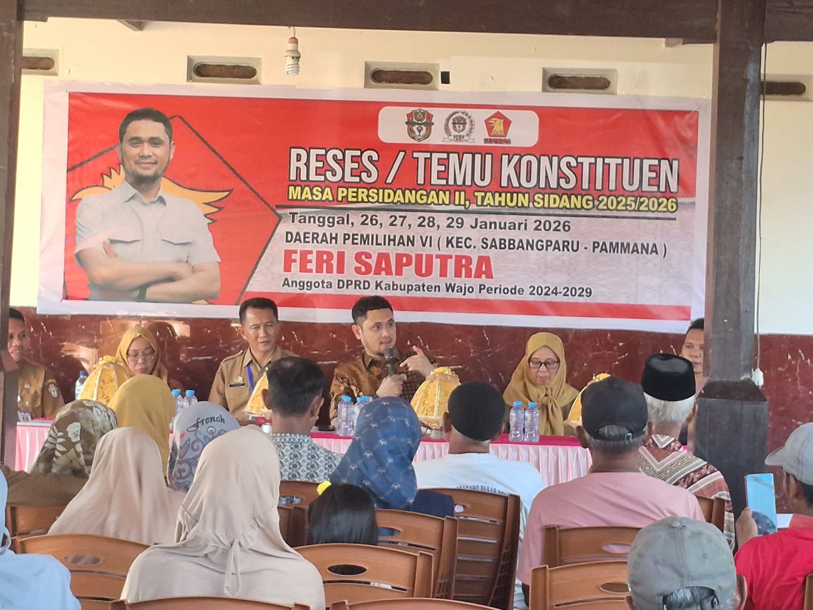 MSI, WAJO – Anggota DPRD Kabupaten Wajo, Feri Saputra Santu, kembali menyerap aspirasi masyarakat dalam agenda reses yang digelar di Desa Tadangpalie, Kecamatan Sabbangparu, Selasa, 27 Januari 2026.